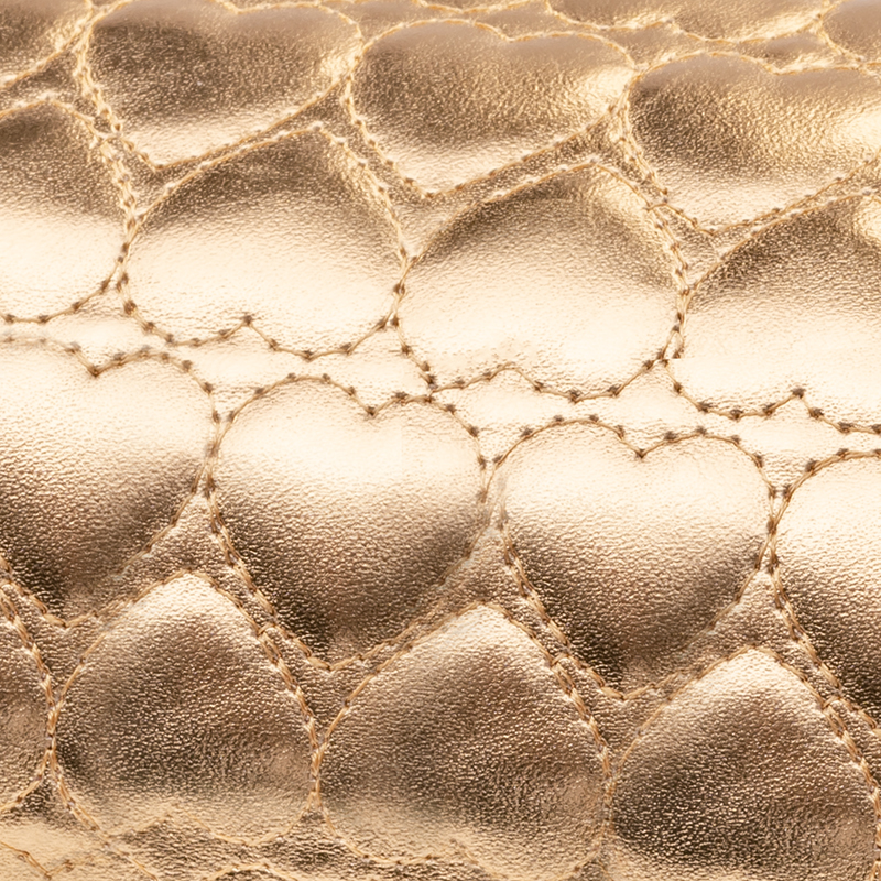 La elegante funda en tonos dorados está hecha de material sintético brillante y decorada con corazones acolchados. Se caracteriza por su resistencia a la humedad y, además, no retiene la suciedad. El polvo de la lima de uñas no se adhiere al material. Mantenerla limpia es muy fácil: simplemente límpiela con una esponja o un paño durante los tratamientos. Se cierra con cremallera, lo que facilita su extracción si es necesario para reemplazarla o limpiarla a fondo.