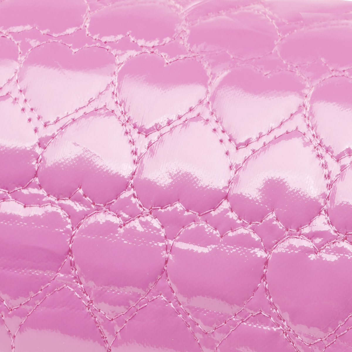 La elegante funda en tonos rosa está hecha de material sintético brillante y decorada con corazones acolchados. Se caracteriza por su resistencia a la humedad y, además, no retiene la suciedad. El polvo de lima de uñas no se adhiere al material. Mantenerla limpia es muy fácil: simplemente límpiela con una esponja o un paño durante los tratamientos. Se cierra con cremallera, lo que facilita su extracción si es necesario para reemplazarla o limpiarla a fondo.