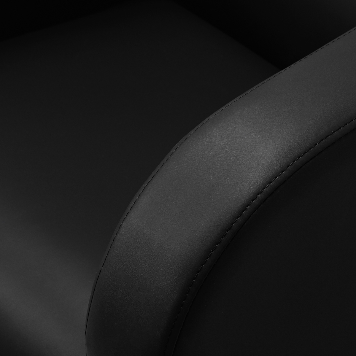 El puesto de lavado de peluquería Gabbiano Sylvia ha sido diseñado para realizar tratamientos de cuidado o coloración con comodidad, además de proporcionar al cliente una posición cómoda durante procedimientos más largos. Llama la atención por su simplicidad y forma geométrica, mientras que las líneas perpendiculares del asiento y los reposabrazos le confieren un toque moderno. El respaldo, con un ángulo óptimo, proporciona un excelente soporte para la columna vertebral. El asiento, con un perfil adecuado y relleno de espuma resistente, garantiza una gran comodidad de uso, y los reposabrazos tapizados permiten una correcta posición de los hombros. La tapicería de cuero sintético en tonos negros garantiza una larga durabilidad y facilidad de limpieza. El elegante y minimalista diseño del lavabo le da al interior un toque único. El conjunto incluye accesorios completos en tonos negro y cromo, incluyendo grifo, cabezal de ducha y mangueras específicas para proporcionar un conjunto completo de herramientas de trabajo.