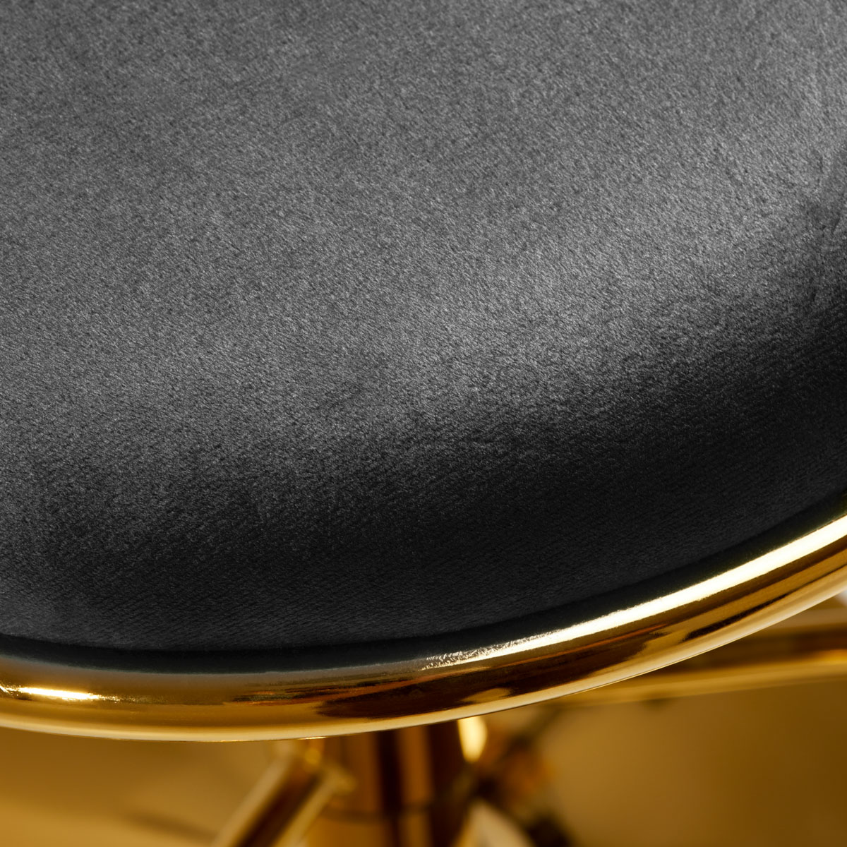 La tapicería de terciopelo agradable al tacto en tonos grises le da al mueble un carácter único, y la tela entrelazada del respaldo realza su aspecto único. Este acabado hace que el mueble sea un punto de atracción. La estructura en tonos dorados aporta elegancia y prestigio, a juego con el terciopelo.