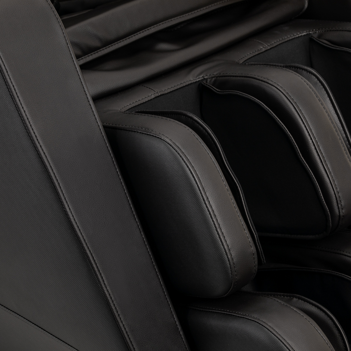 El largo recorrido de masaje con los cabezales es de 95 cm, cubriendo los muslos, glúteos, caderas, columna vertebral y cuello. El mecanismo de masaje proporciona un masaje muscular profundo y placentero de varias maneras. Cuatro cabezales de masaje de silicona de nueva generación, que se mueven a velocidades variables hacia arriba, hacia abajo y hacia los lados, proporcionan un masaje de espalda eficaz, imitando el trabajo de las manos humanas. Sus movimientos realizan golpeteos, amasamientos, presiones y masajes shiatsu, mejorando así el estado general del cuerpo y eliminando el dolor. Tras cada sesión de masaje en el sillón, se observa una notable reducción de la tensión muscular y el cuerpo se relaja y revitaliza agradablemente. El masajeador de pies con rodillos integrado utiliza métodos de acupresión y su funcionamiento relaja eficazmente los músculos, elimina la fatiga y tiene un efecto positivo en el bienestar general. El movimiento pulsante de las bolsas de aire en pies, pantorrillas, glúteos, brazos y hombros regula el flujo linfático, facilita la desintoxicación y mejora la circulación sanguínea. Esto reduce la presión arterial, mejora la oxigenación muscular y facilita la eliminación de toxinas. Este tratamiento elimina la tensión y proporciona un alivio placentero para el resto del día. La actividad de las bolsas de aire se puede ajustar en el panel de control.